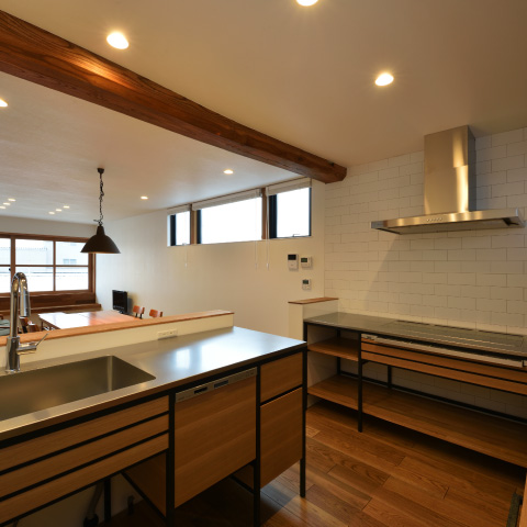 自社工場にて設計から施工まで一貫で行い、国家資格を持つ経験豊かな熟練職人が仕上げるキッチンです。